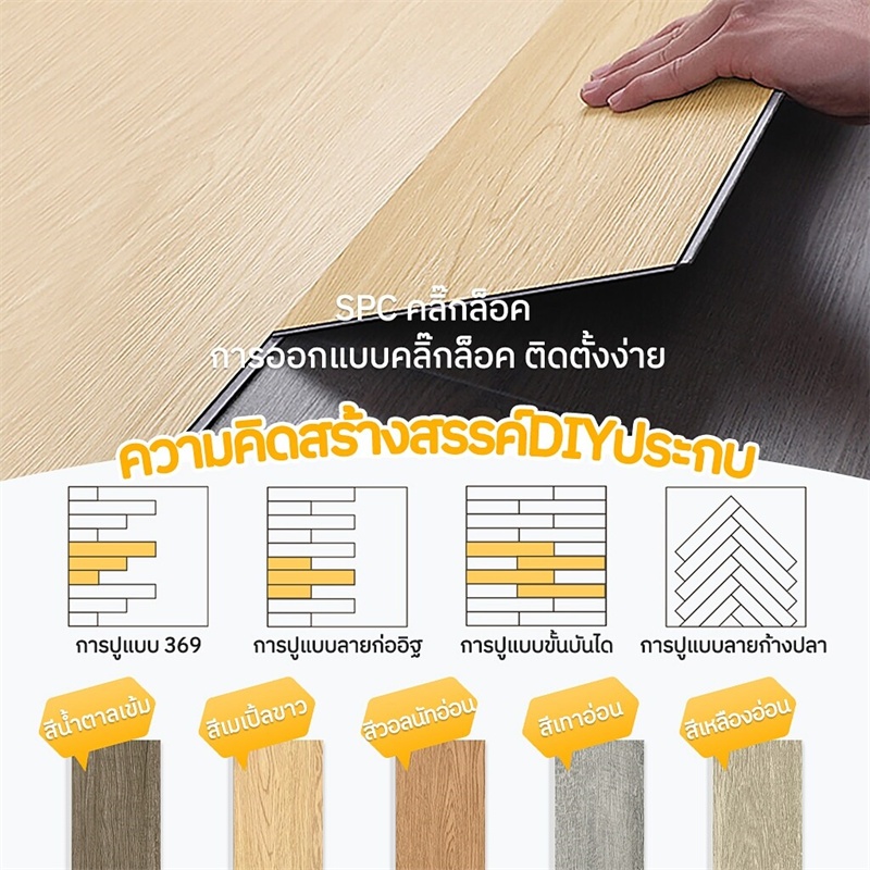 พื้น SPC คลิกล็อค DIY กระเบื้องยาง หนา 5mm ทนไฟ กันความชื้น ติดตั้งง่าย 5 แผ่น/กล่อง ปูได้ 1.1 ตร.ม.