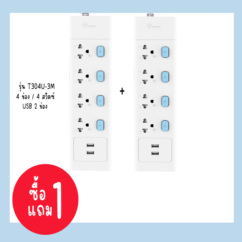 Derndong 1แถม1 ปลั๊กไฟGongniu มี มอก. มีมาตรฐานสูง ความยาวสายไฟขนาด3เมตร แบบมีสวิทซ์และUSB