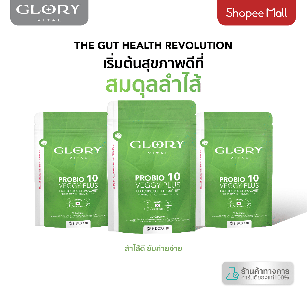 Glory แพ็คสุดคุ้ม Probiotic Veggy Plus กลอรี่โพรไบโอติกส์ เวจจี้พลัส x3 (3 ซอง)