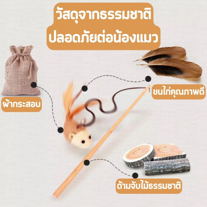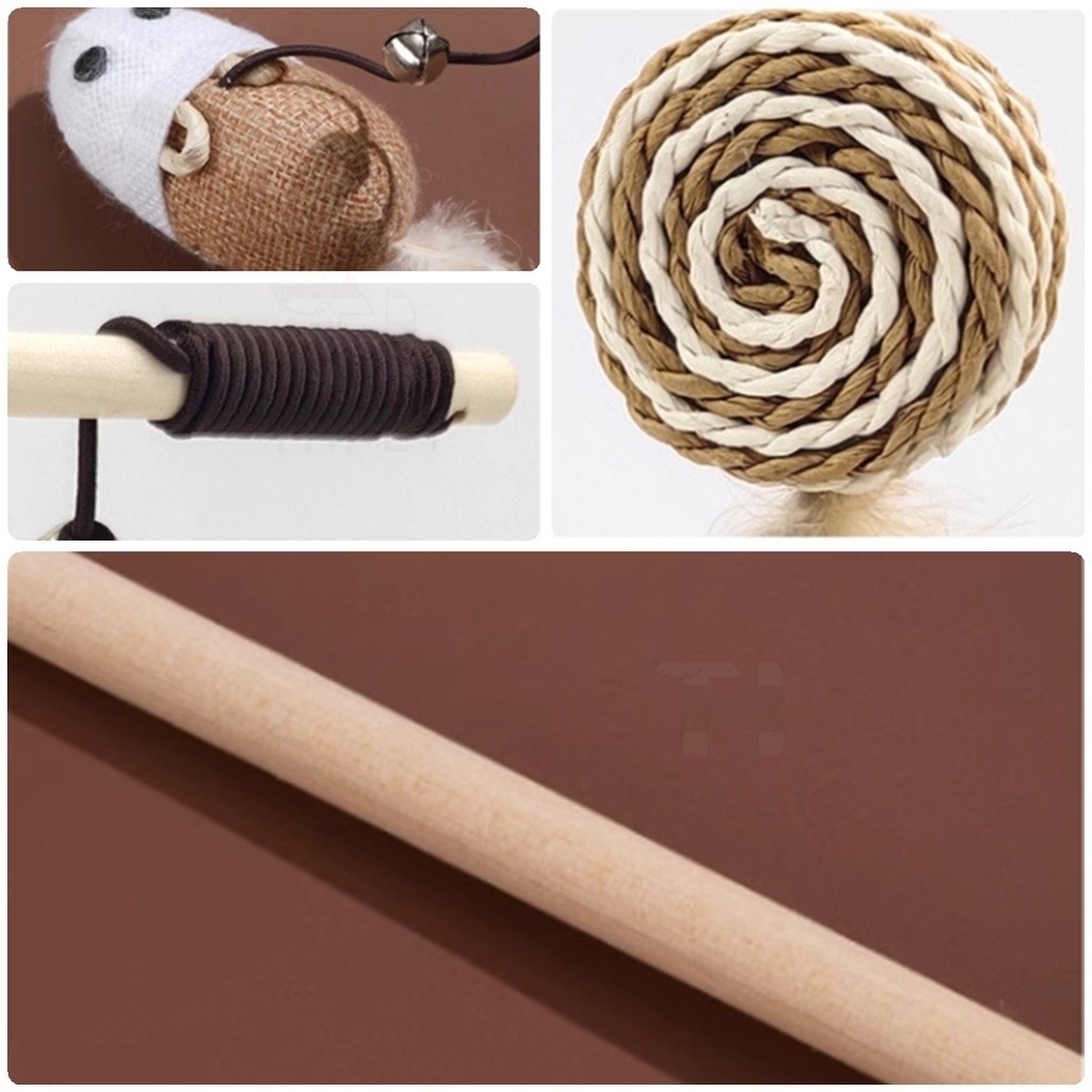 ของเล่นไม้เสาไม้ รูปหนู สําหรับสัตว์เลี้ยง แมว ของเล่นแมว ไม้ตกแมว ไม้ล่อแมว วัสดุธรรมชาติ🚛 พร้อมส่ง
