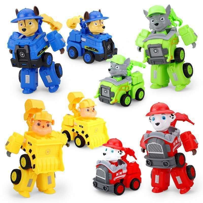 หุ่นยนต์รถทีม paw patrol ของเล่นเสริมการศึกษา สําหรับเด็ก การเปลี่ยนรูป รถของเล่น