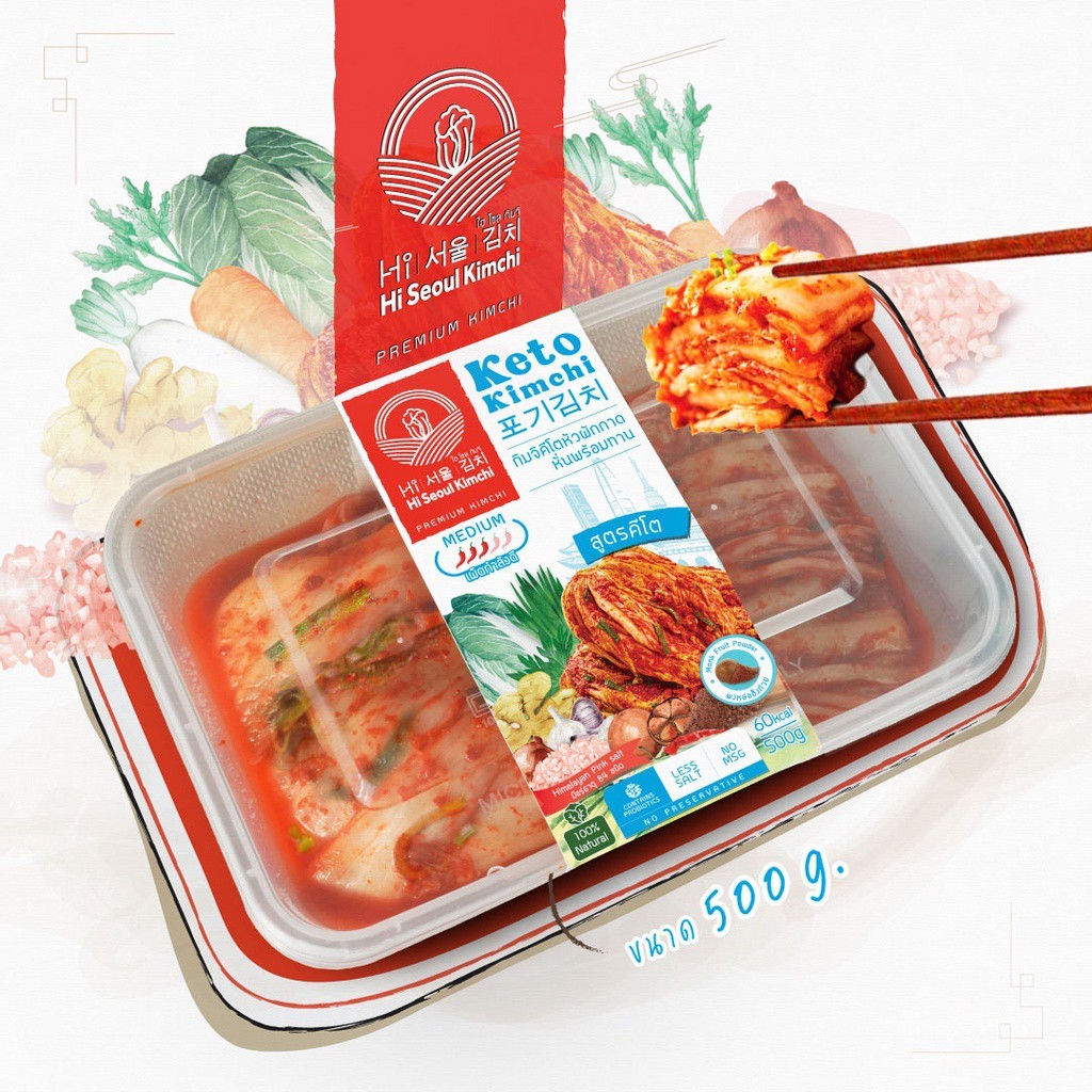 Hi Seoul Kimchi กิมจิหัวผักกาดหั่นพร้อมทาน สูตรคีโต ขนาด 500 g. (00384) - IEL