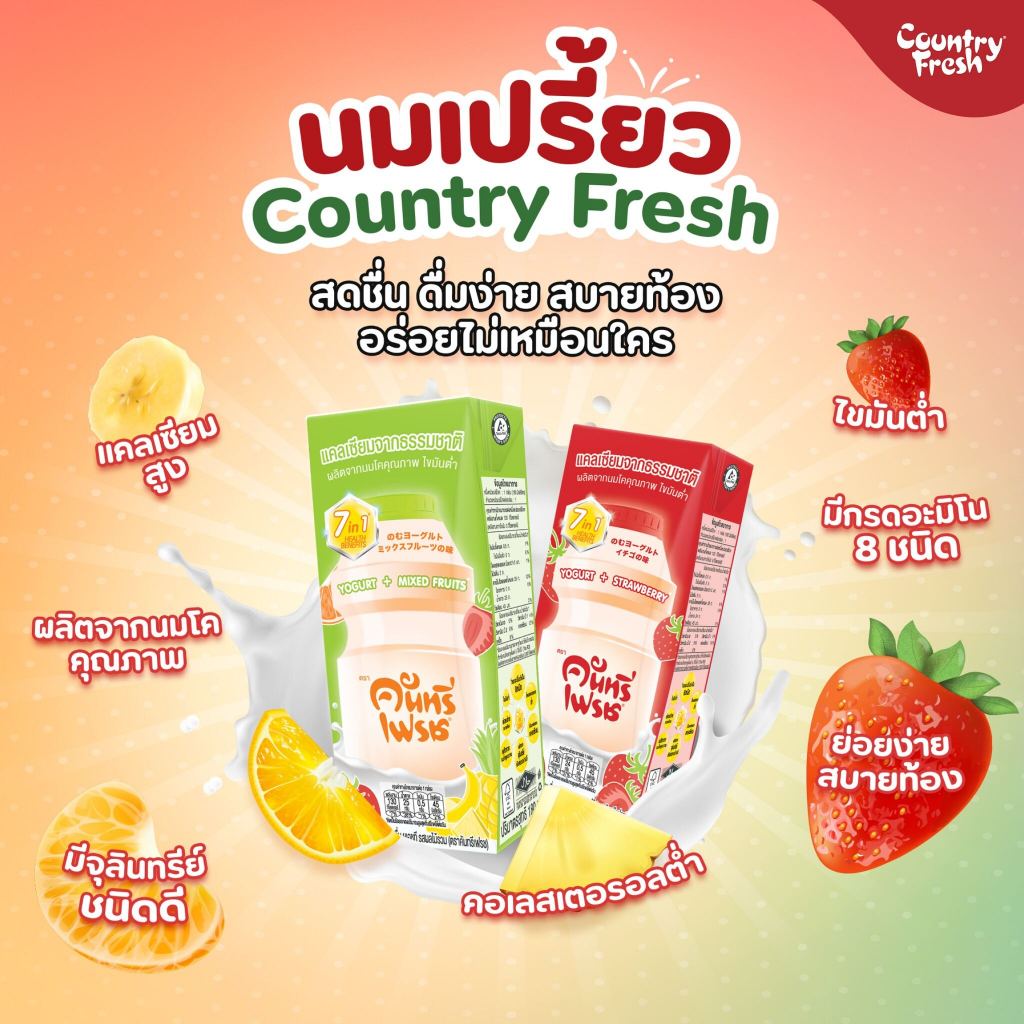 Country Fresh นมเปรี้ยวรสสตรอเบอร์รี่ นมกล่องพร้อมดื่ม ขนาด 180 มล. (4 แพ็ค) [ ST-PACK x 4 ]