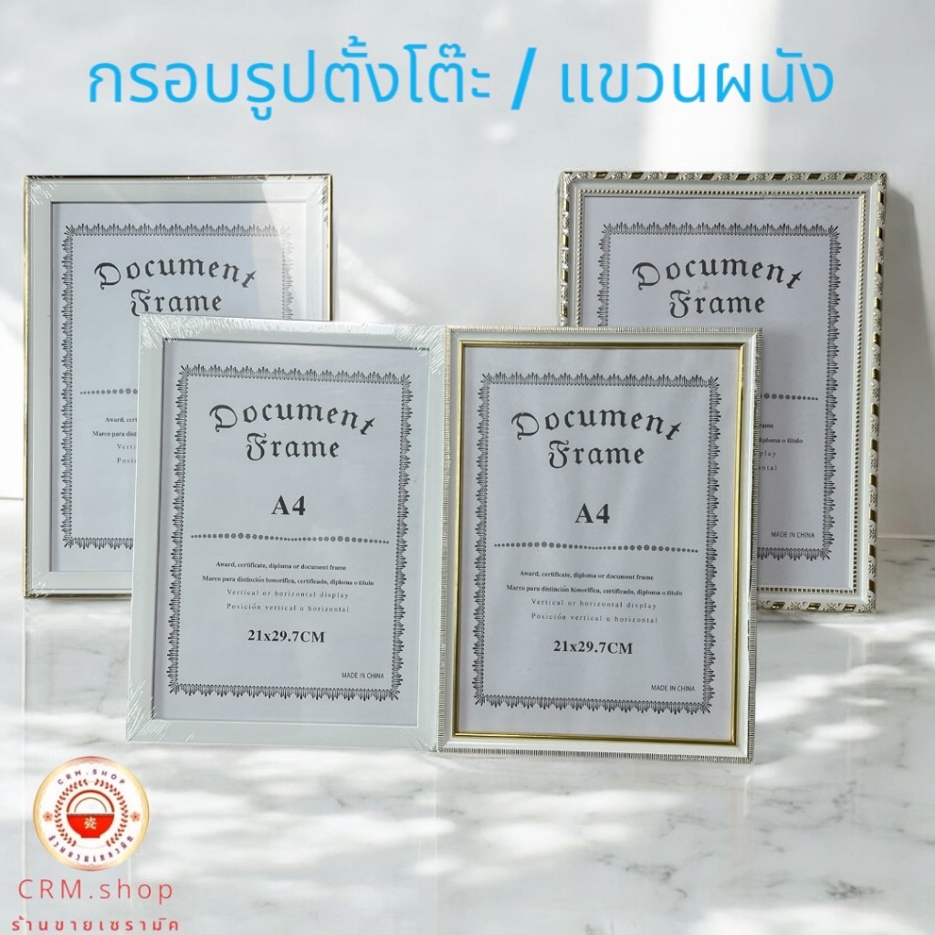 กรอบรูป ขนาดA4 กรอบใส่เกียรติบัตร มีขาตั้ง วางได้ทั้งแนวนอน แนวตั้ง และแขวนผนัง ได้ตามชอบขนาด21x29.7 ซม. พร้อมส่งจากไทย