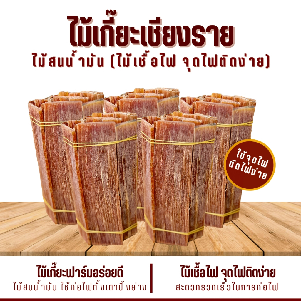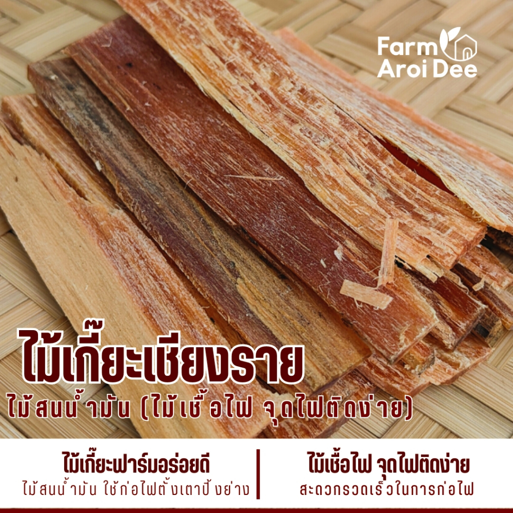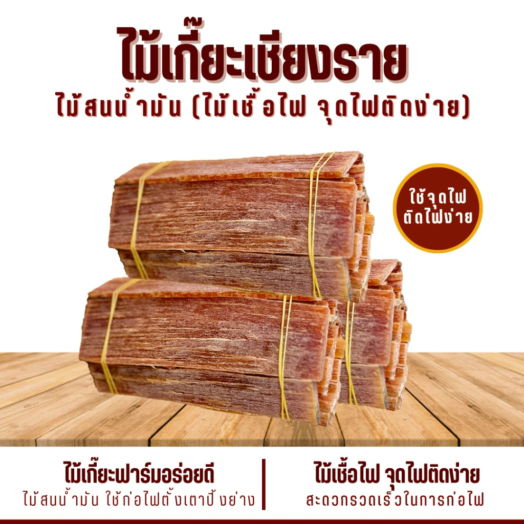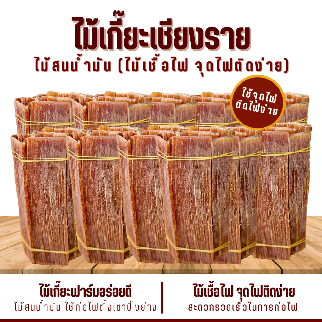 ไม้เกี๊ยะ ติดไฟง่าย (มีกลิ่นหอมไม้สน) ใช้จุดไฟ ก่อกองไฟ เตาย่าง เตาถ่าน
