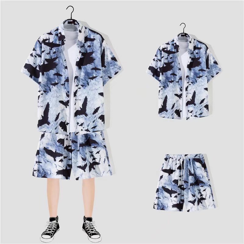 เสื้อเชิ้ตแขนสั้น และกางเกงฮาวาย ทรงหลวม พิมพ์ลายดอกไม้ เหมาะกับเดินชายหาด สไตล์ฮาวาย สําหรับผู้ชาย รุ่น 2129