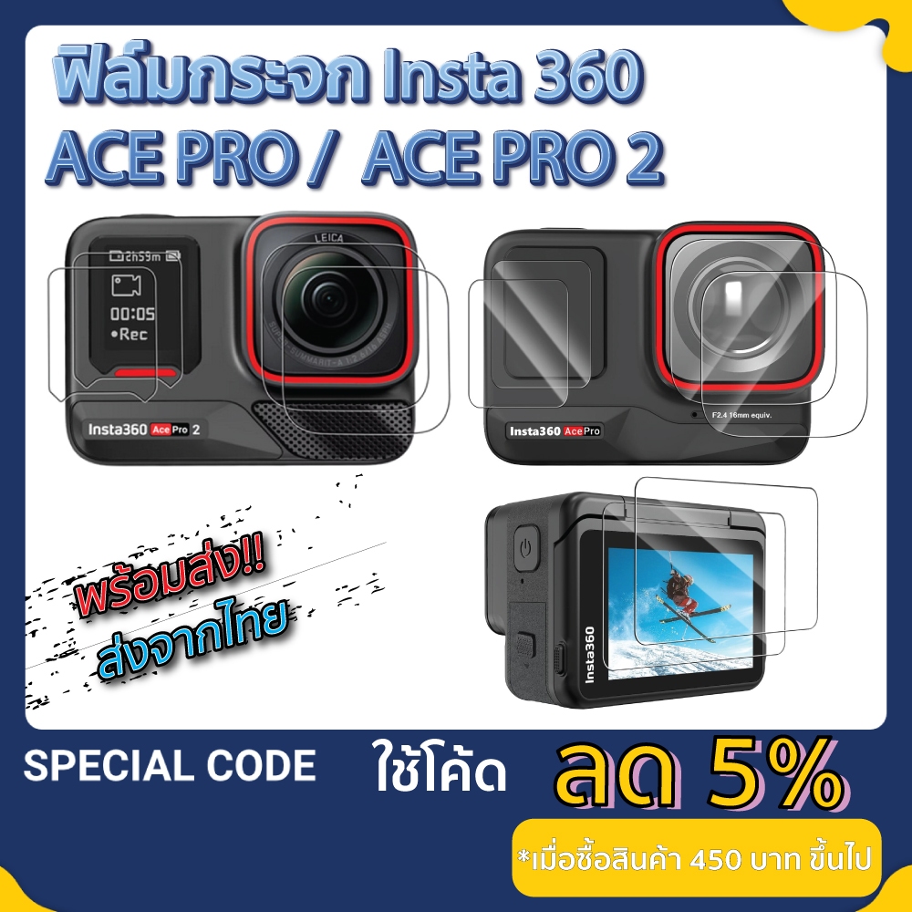 ฟิล์มกระจก Insta360 Ace Pro 2 รุ่นใหม่ ติดง่าย Tempered Protective Glass Film for Insta360 Ace Pro