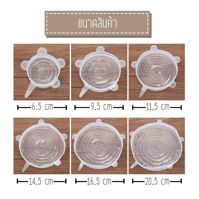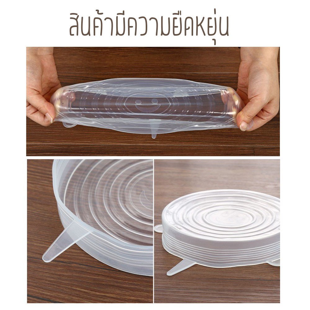 ฝาซิลิโคนครอบอาหาร ฝาปิดถนอมอาหาร สำหรับถนอมผัก ผลไม้ และอาหาร 6 ชิ้น/เซต /1025