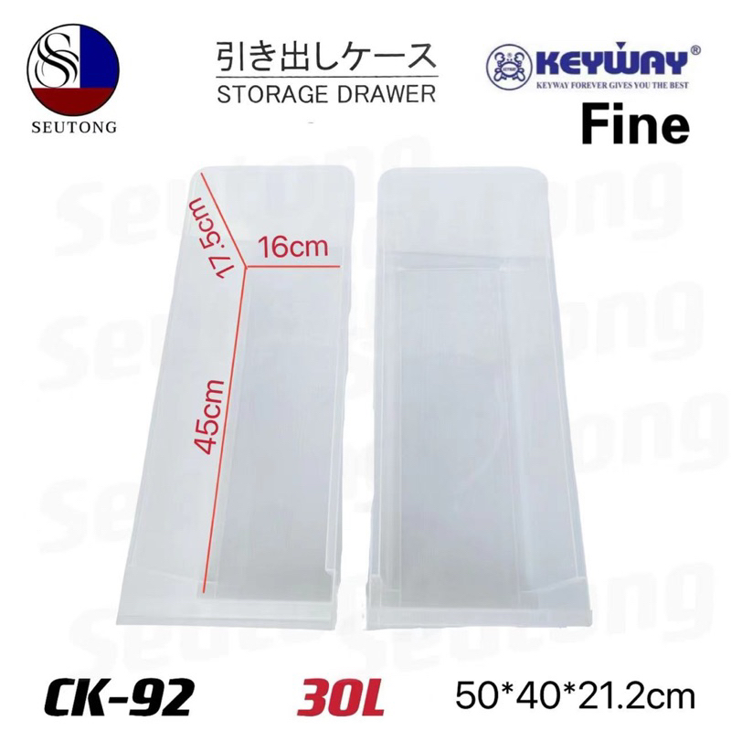 Keyway กล่องลิ้นชักพลาสติกสีขาวขุ่น ลิ้นชักใส่เสื้อผ้า ขนาด30L วางซ้อนกันได้ รุ่น CK-91 (1 ช่อง)/CK-92 (2 ช่อง)