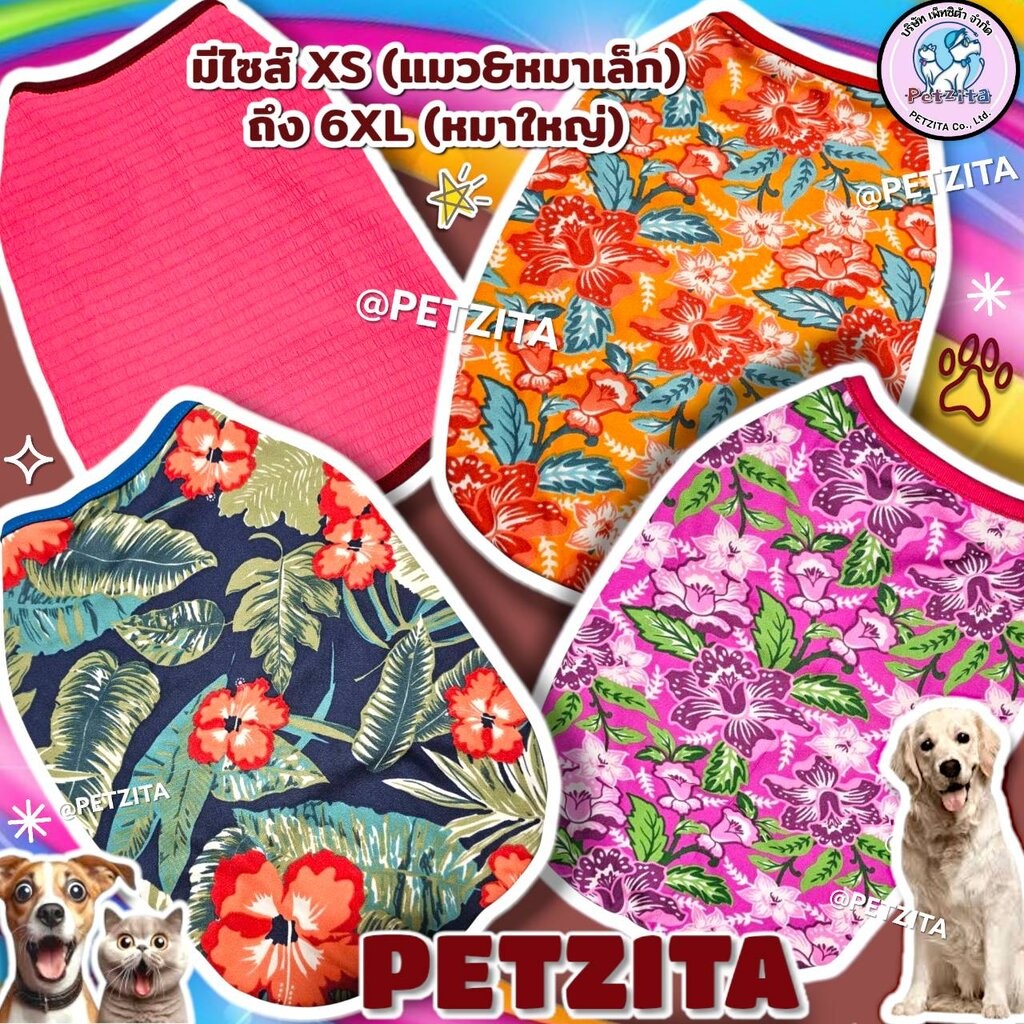 🇹🇭พร้อมส่ง🇹🇭 💥😍 เสื้อกล้ามแฟชั่น ลายดอก เสื้อสุนัข แมว หมาเล็ก หมาใหญ่