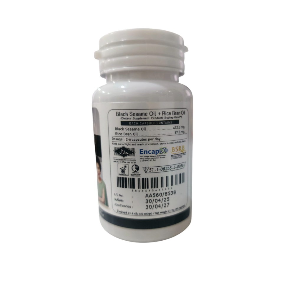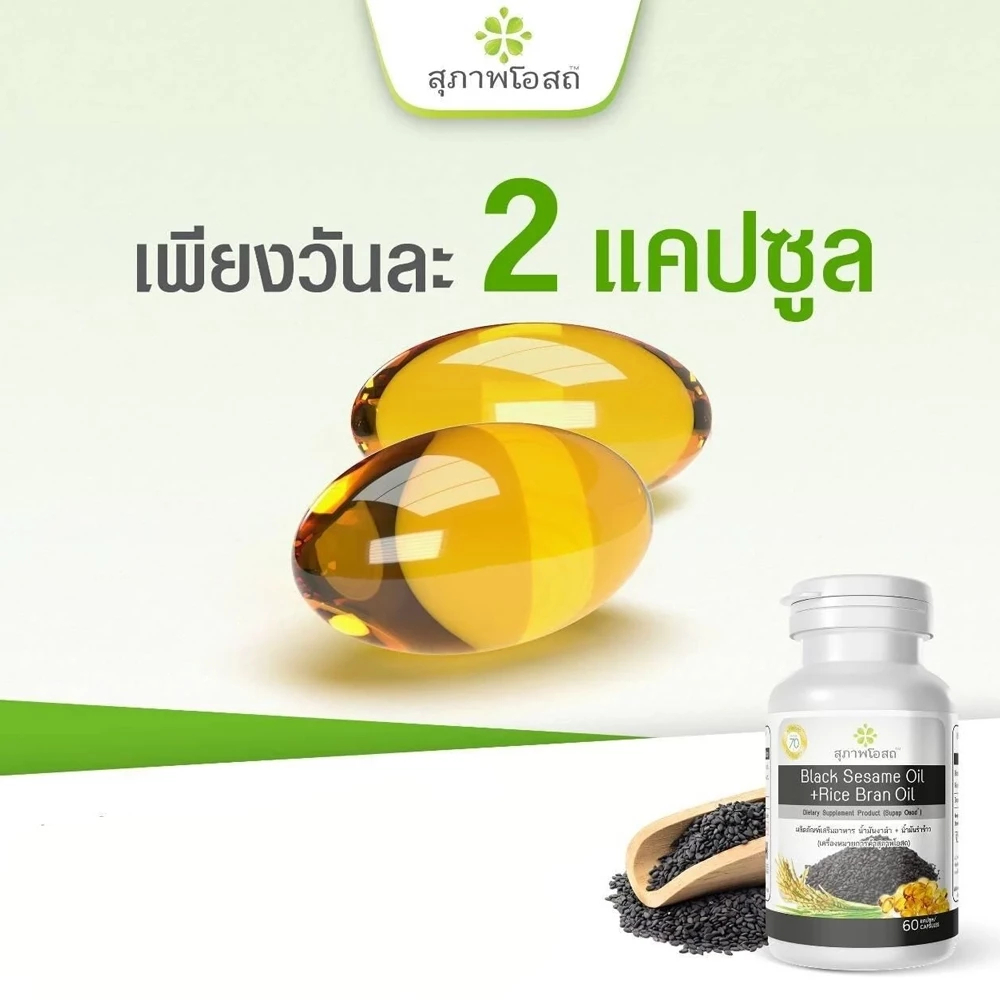 สุภาพโอสถ ส่งฟรี น้ำงันงาดำ น้ำมันรำข้าว สกัดเย็น (1 กระปุก 30 แคปซูล)