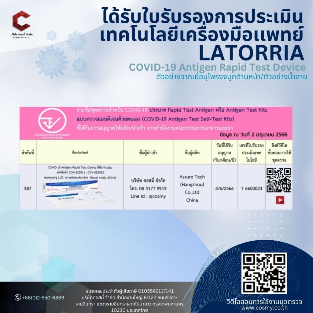 LATORRIA ชุดตรวจโควิด atk แบบ2in1จมูกและน้ำลาย (1กล่อง1ชุดทดสอบ) LATORRIA (แบบเซ็ต5,10,20)