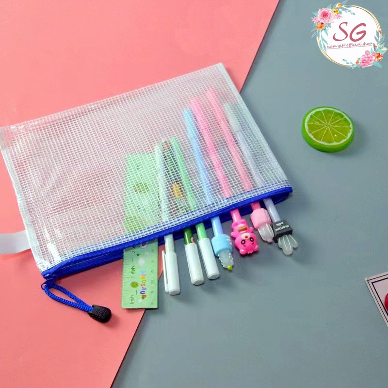 WGD2024 กระเป๋าดินสอแบบตาข่ายมีซิป กันน้ำ ขนาด B4, A3, A4, A5, A6 มี 5 สี เหมาะสำหรับเครื่องเขียน