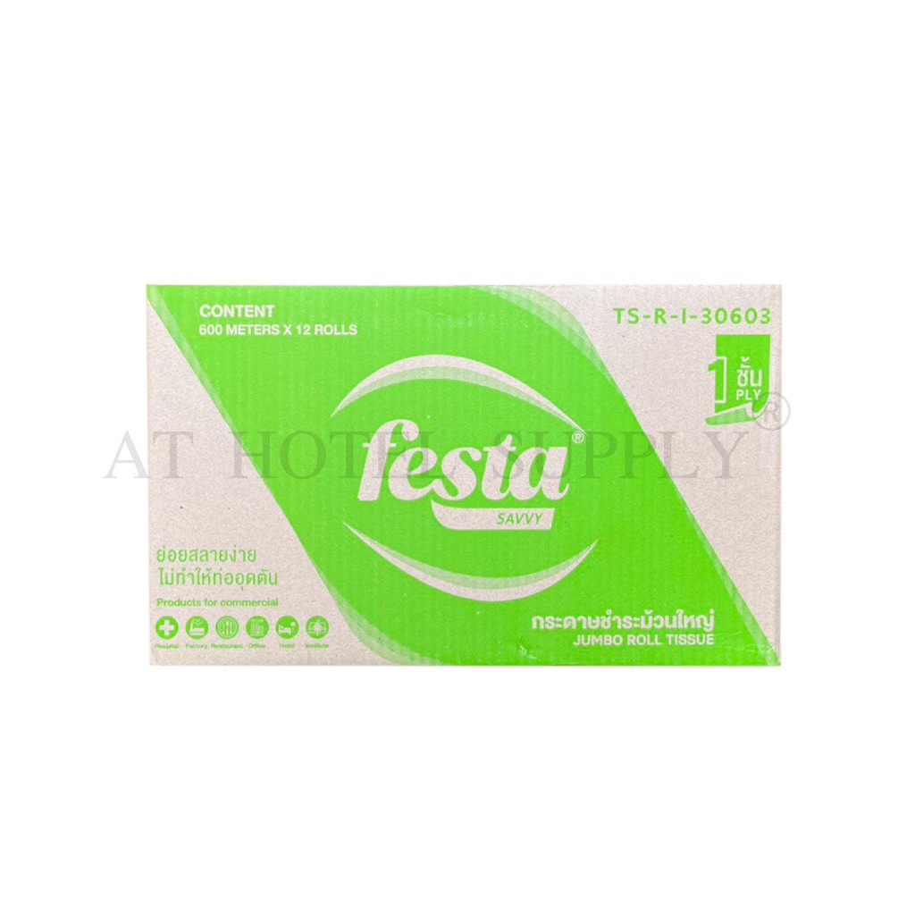 Festa กระดาษชำระม้วนใหญ่ ทิชชู่ม้วนใหญ่ กระดาษชำระ JRT 1 ชั้น 600 เมตร จำนวน 12 ม้วน, 1 ลัง