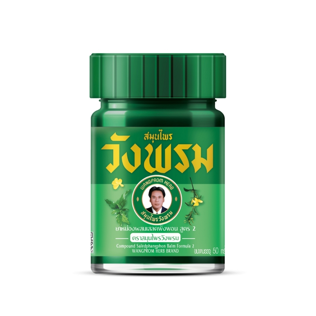 สมุนไพรวังพรม ยาหม่อง ขนาด 50 กรัม มี 2 สูตร เสลดพังพอน (สีเขียว) / ไพลสด (สีเหลือง)