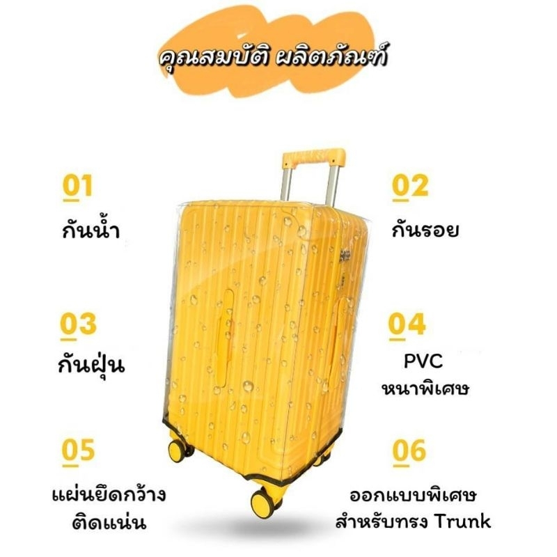 ผ้าคลุมกระเป๋าเดินทาง รุ่นสปอร์ตโปร่งใส PVC รุ่นหนาพิเศษ 26/28/30/32 นิ้ว กันน้ำและทนต่อการสึกหรอ