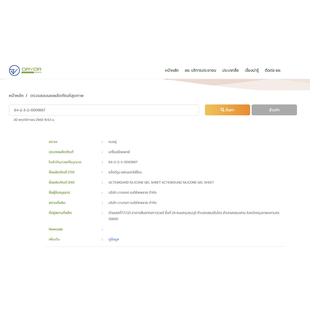Actewound Silicone Gel Sheet แอ๊คติวูน ซิลิโคน เจล ชีท แผ่นแปะซิลิโคน แบบม้วน ดูแลรอยแผลเป็น ขนาด 2.5x100 cm
