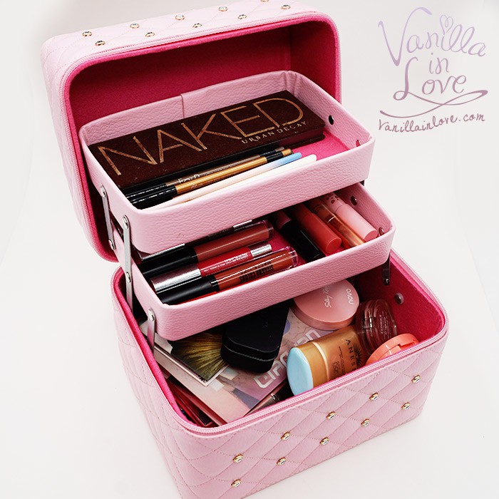 BG452 กระเป๋าเครื่องสำอางทรงแข็ง Vanilla in love ขนาดใหญ่ 2 ชั้น