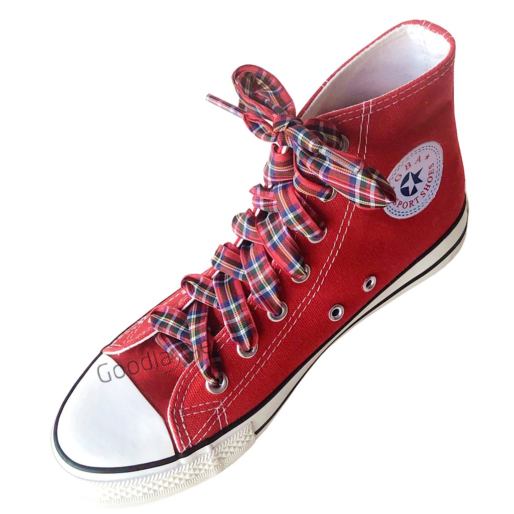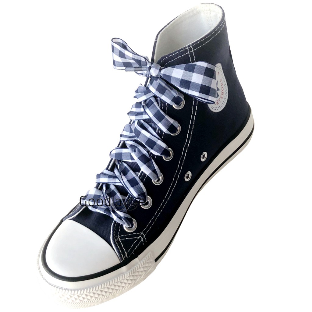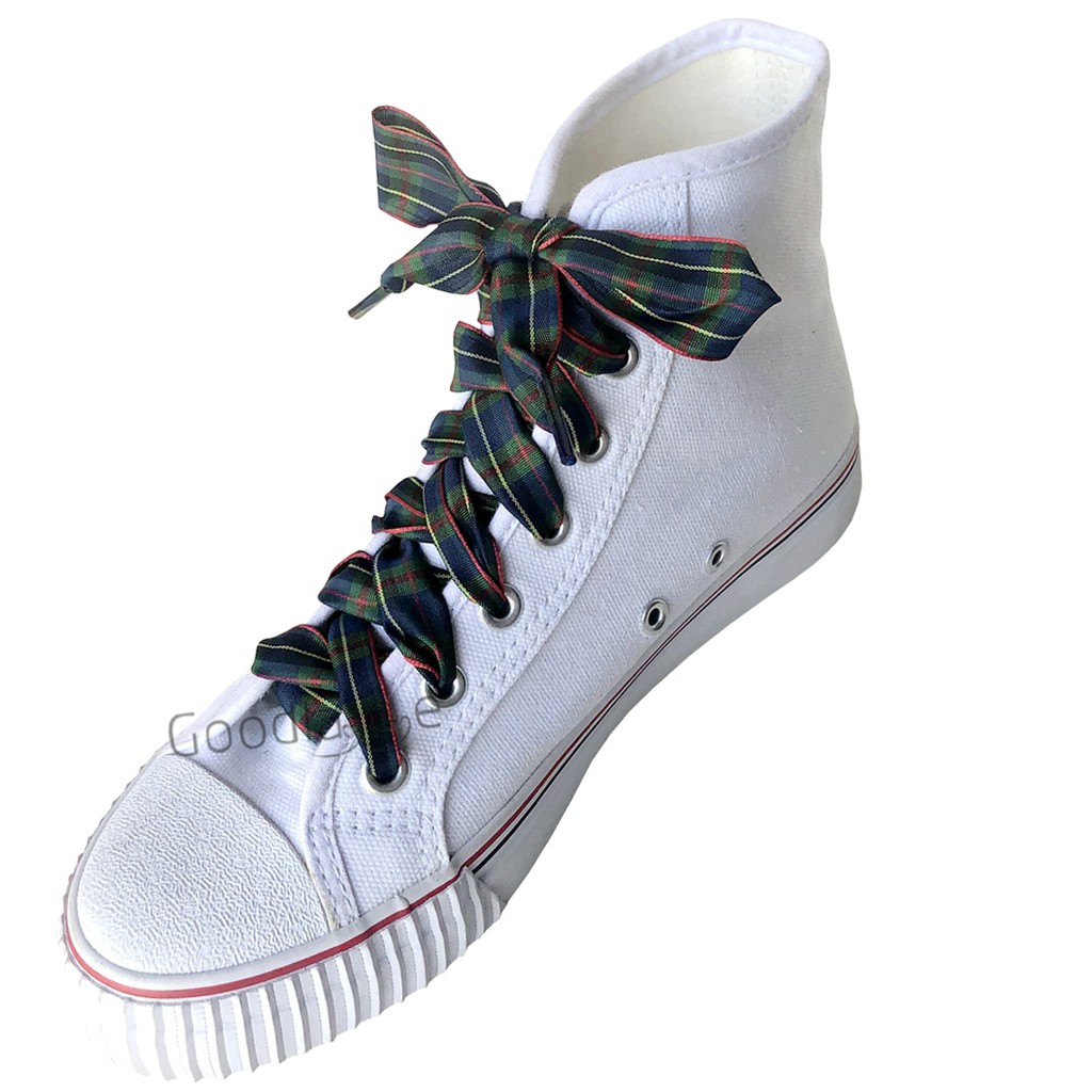 เชือกผูกรองเท้าริบบิ้นสไตล์สก็อตขนาด 120 ซม. เชือกผูกรองเท้าผ้าฝ้ายลายตารางแบนกว้าง 2.5 ซม