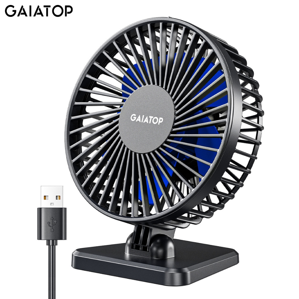 GAIATOP พัดลมตั้งโต๊ะ USB ขนาดเล็กแต่ทรงพลัง พกพาสะดวก พัดลมตั้งโต๊ะปรับความเร็วลมได้ 3 ระดับ พัดลมตั้งโต๊ะขนาดเล็กปรับระดับได้เพื่อควา