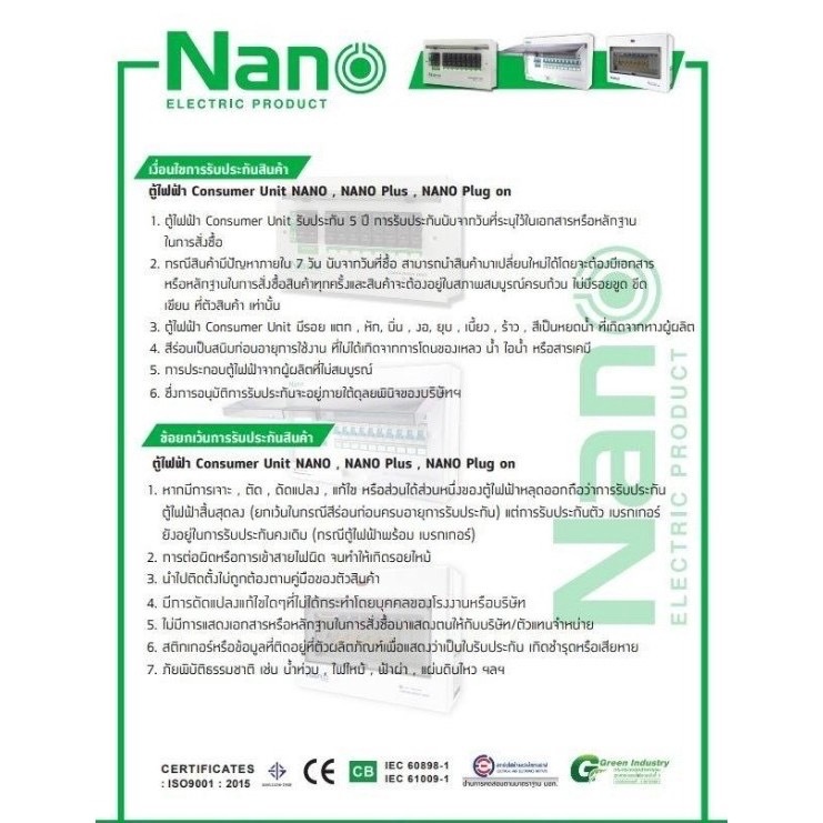 (ส่งไวมี มอก.) ตู้คอนซูมเมอร์ Nano Plus 2 ช่อง ยูนิต CONSUMER UNIT NANO PLUS เมนเบรคเกอร์ธรรมและกันดูด
