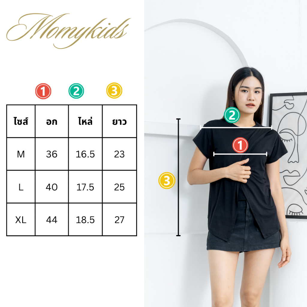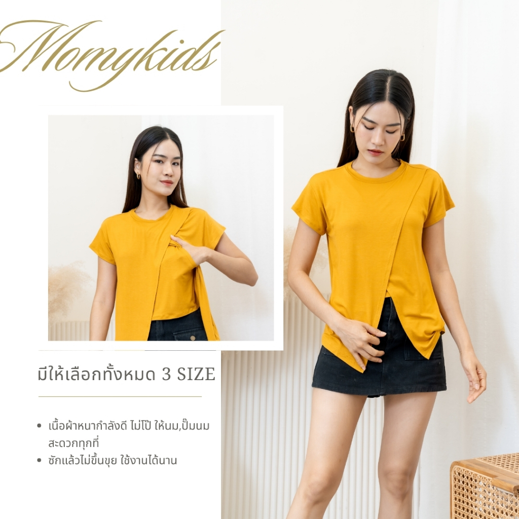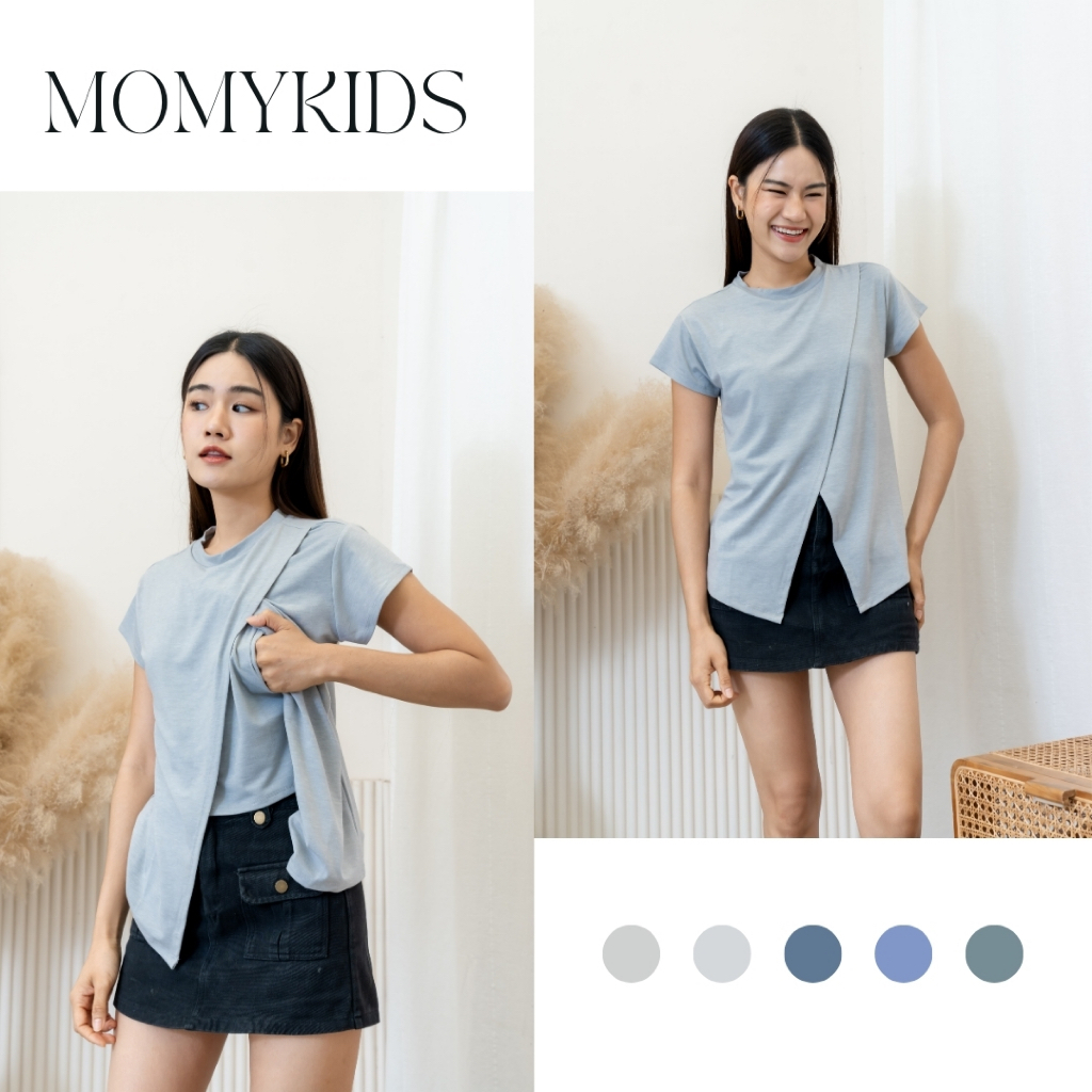 Momykids เสื้อยืดให้นม ผ้า Premium Cotton เปิดให้นมได้ 2 ข้าง สำหรับให้นม
