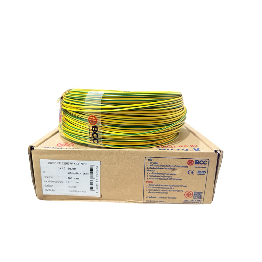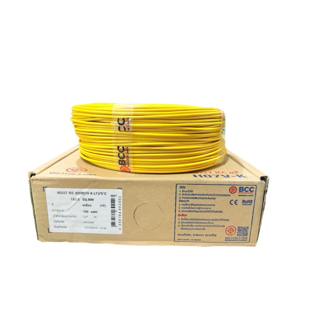 BCC Bangkok Cable H05V-K-LF H07V-K-LF ขนาด 1.5 SQ.MM. ขายยกม้วน 100เมตร/ม้วน สายคอนโทรล ฝอย สายอ่อน แกนเดี่ยว IEC06