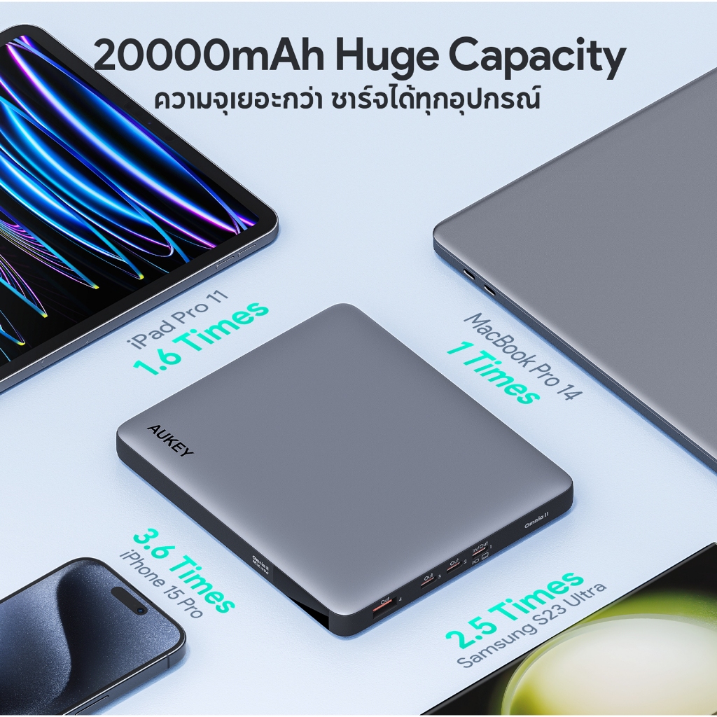 AUKEY PB-Y44 พาวเวอร์แบงค์ชาร์จเร็ว Sprint X 20K 100W 20000mAh Laptop Power Bank with PD3.0