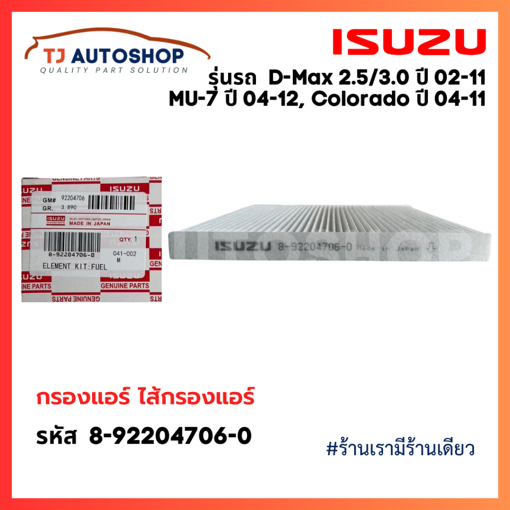 กรองแอร์ ISUZU D-MAX 2.5,3.0 ปี 02-11 , MU-7 ปี 04-12, Colorado ปี 04-11 รหัสแท้ 8-92204706-0