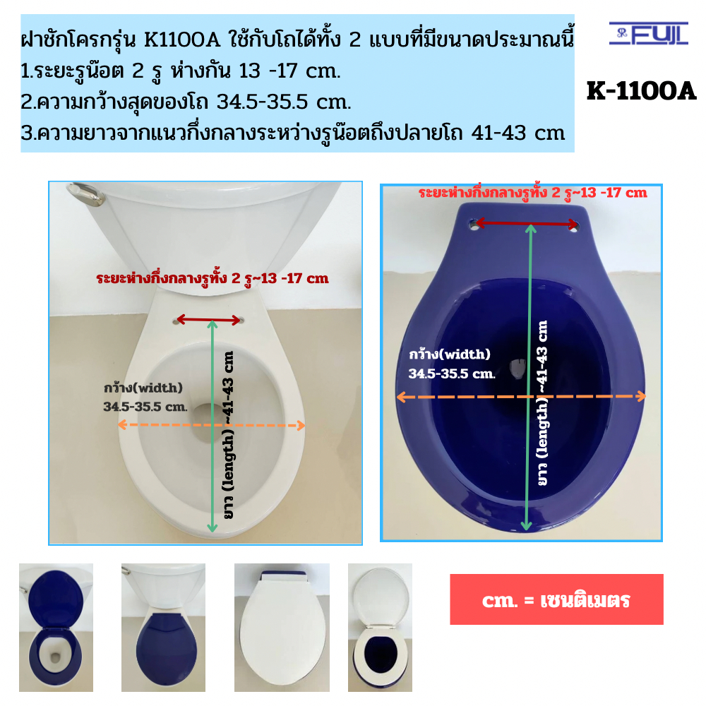 ฝารองนั่งชักโครก Fuji รุ่น K-1100A ✔✔✔ ถูก สวย (มีชุดน๊อต) ใช้ได้ทั้งชักโครกราดน้ำและแบบมีถังกดน้ำ