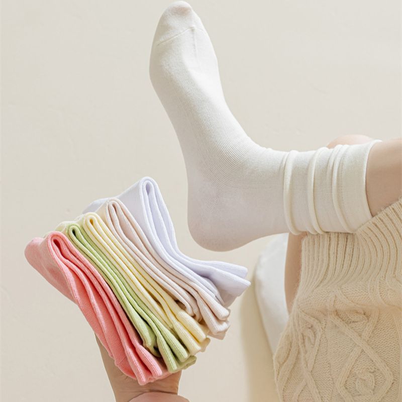 ถุงเท้าผู้หญิงทันสมัย ถุงเท้าผ้าฝ้ายสีทึบ ระบายอากาศได้ดี สวมใส่สบาย