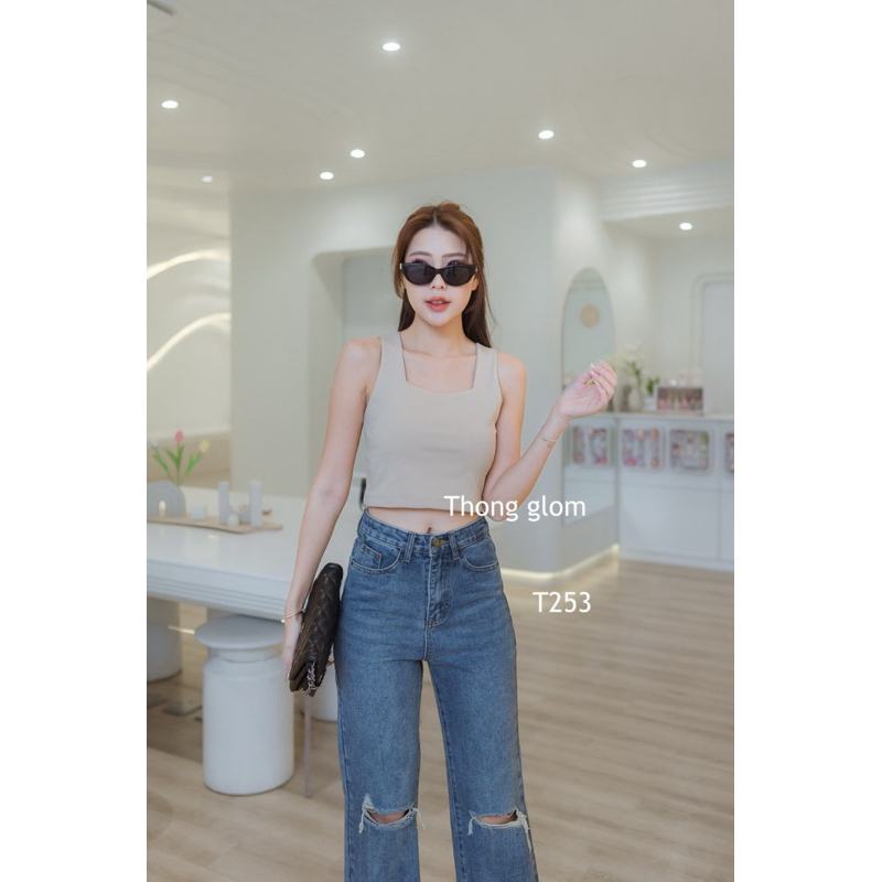 T253 เสื้อกล้ามคอเหลี่ยม เสื้อกล้ามครอป