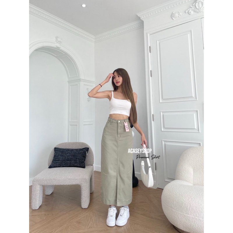 Acasey กระโปรง ผ้ายีนส์ ผ้ายืด ตัวยาวผ่าหน้า ไซส์ S - XL รุ่น กระโปรงผ่าหน้า เรีบบGm