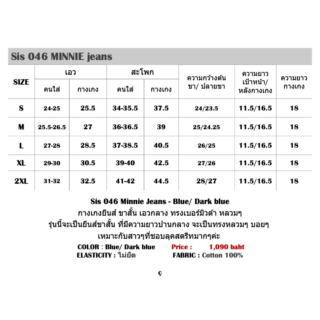 Sis story กางเกงยีนส์ ขาสั้น เอวกลาง ทรงเบอร์มิวด้า Sis 046 Minnie denim shorts - Blue/Dark blue