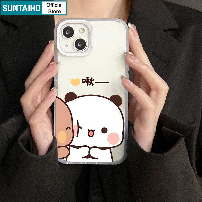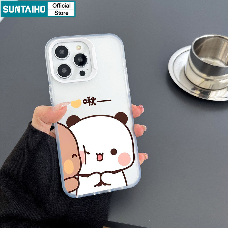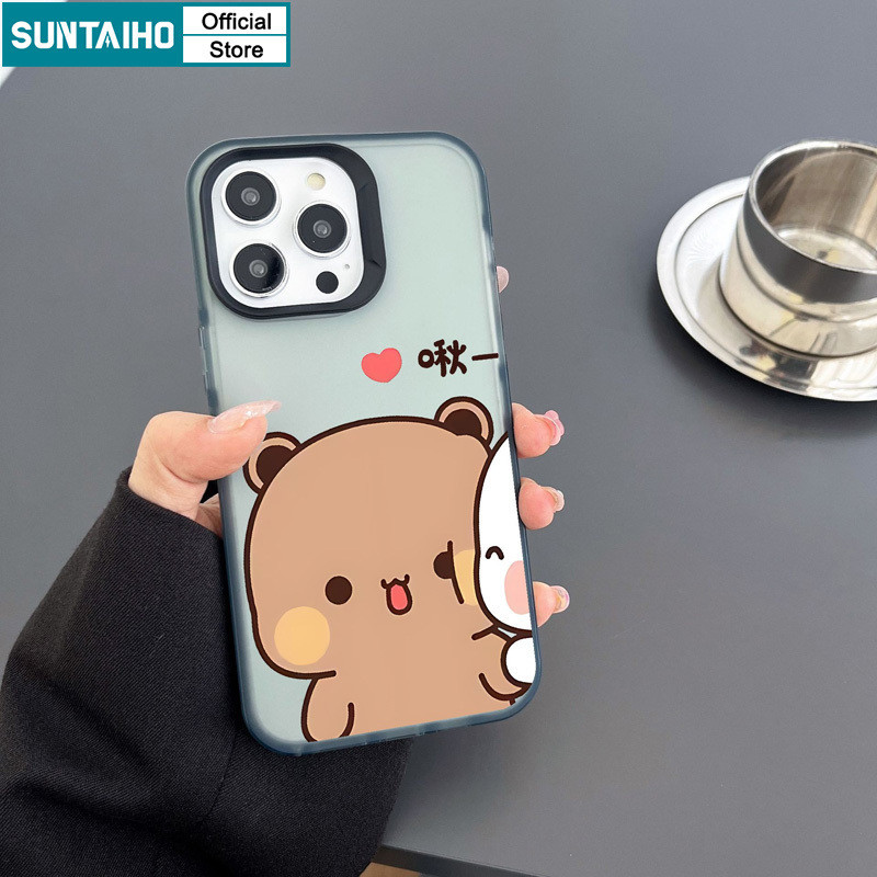 Suntaiho ตลกปลอกหมีคู่รูปแบบ Clear Frosted สําหรับ iPhone 17 1615 14 12 13 11 Pro Max IP 7 8 Plus Iphon X XS XR Xs Max TPU ซิลิโคนนุ่มพรีเมี่ยมกันกระแทกปกหลัง