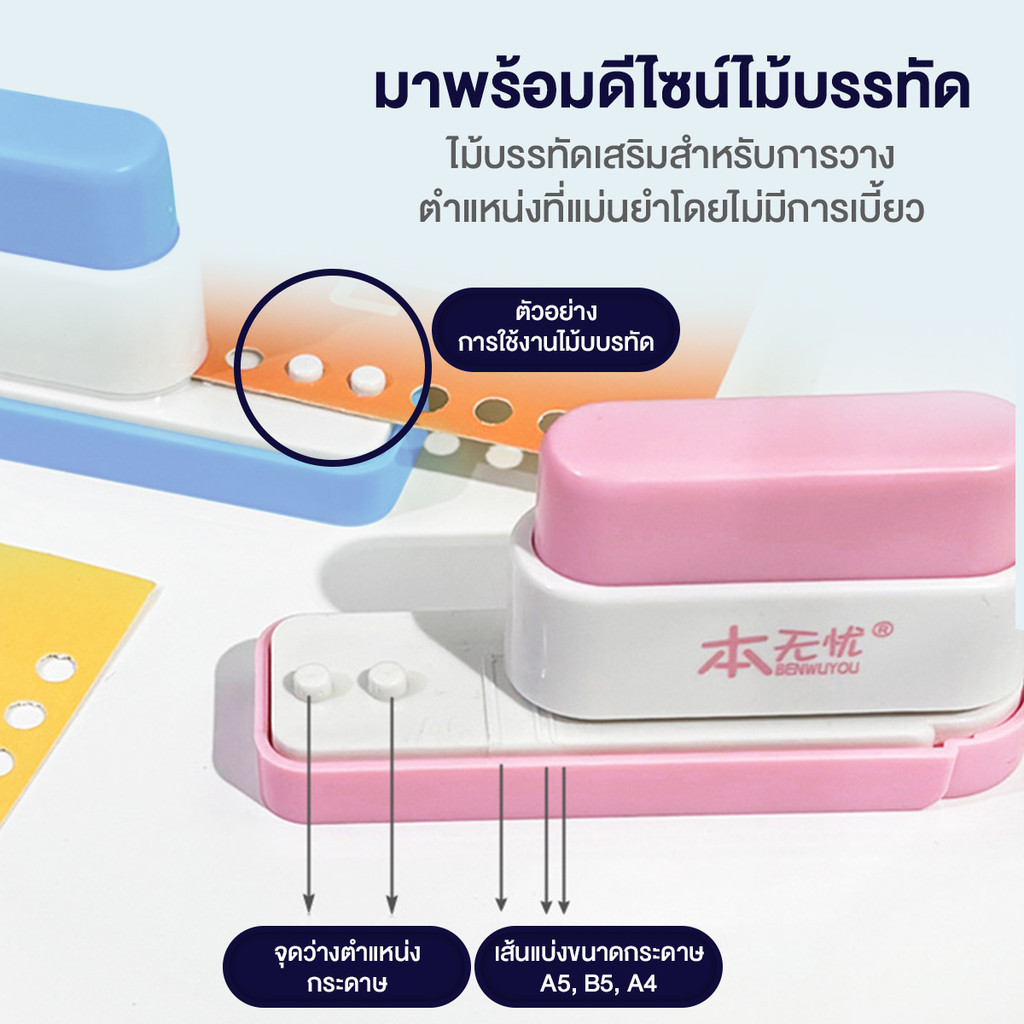 Ohayo ที่เจาะกระดาษ 5 รู เครื่องเจาะรูกระดาษ ที่เจาะรูกระดาษ เครื่องเจาะรู แบบแมนนวล อุปกรณ์เข้าเล่ม DIY สําหรับนักเรียน