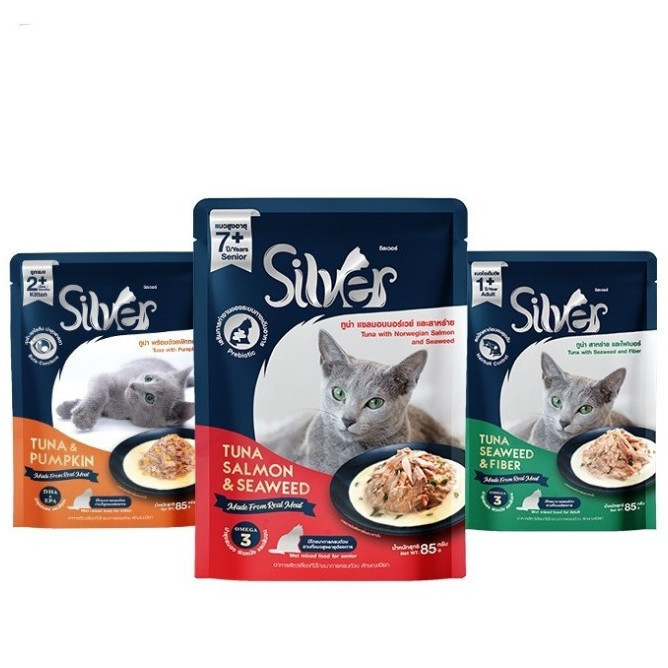 [1 ซอง] SILVER Gravy แมวเปียกในเกรวี่ สำหรับแมวทุกช่วงวัย 85 กรัม