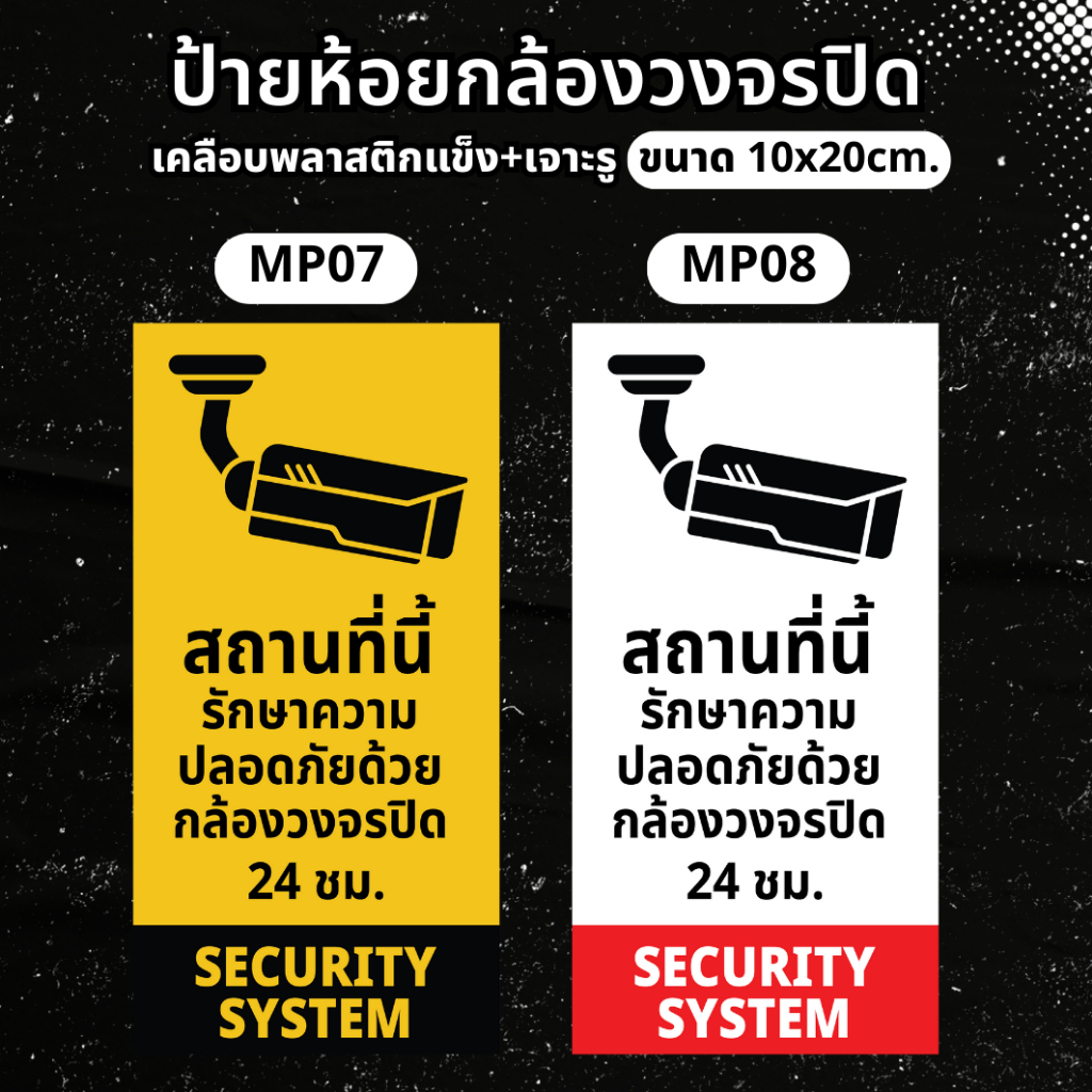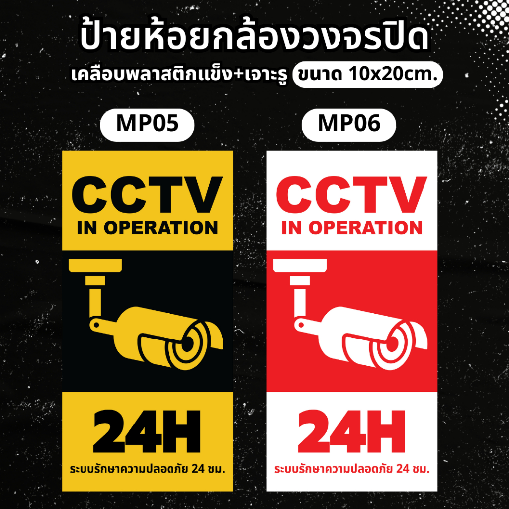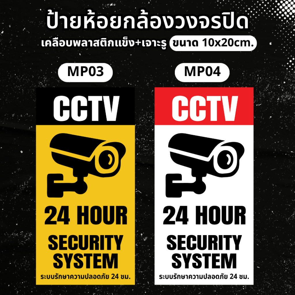 ป้ายห้อยกล้องวงจรปิด ป้ายแจ้งเตือนมีกล้องวงจรปิด ป้ายกล้องวงจรปิด 24ชม. ป้ายเคลือบพลาสติกแข็งกันน้ำ ขนาดเล็ก MP001