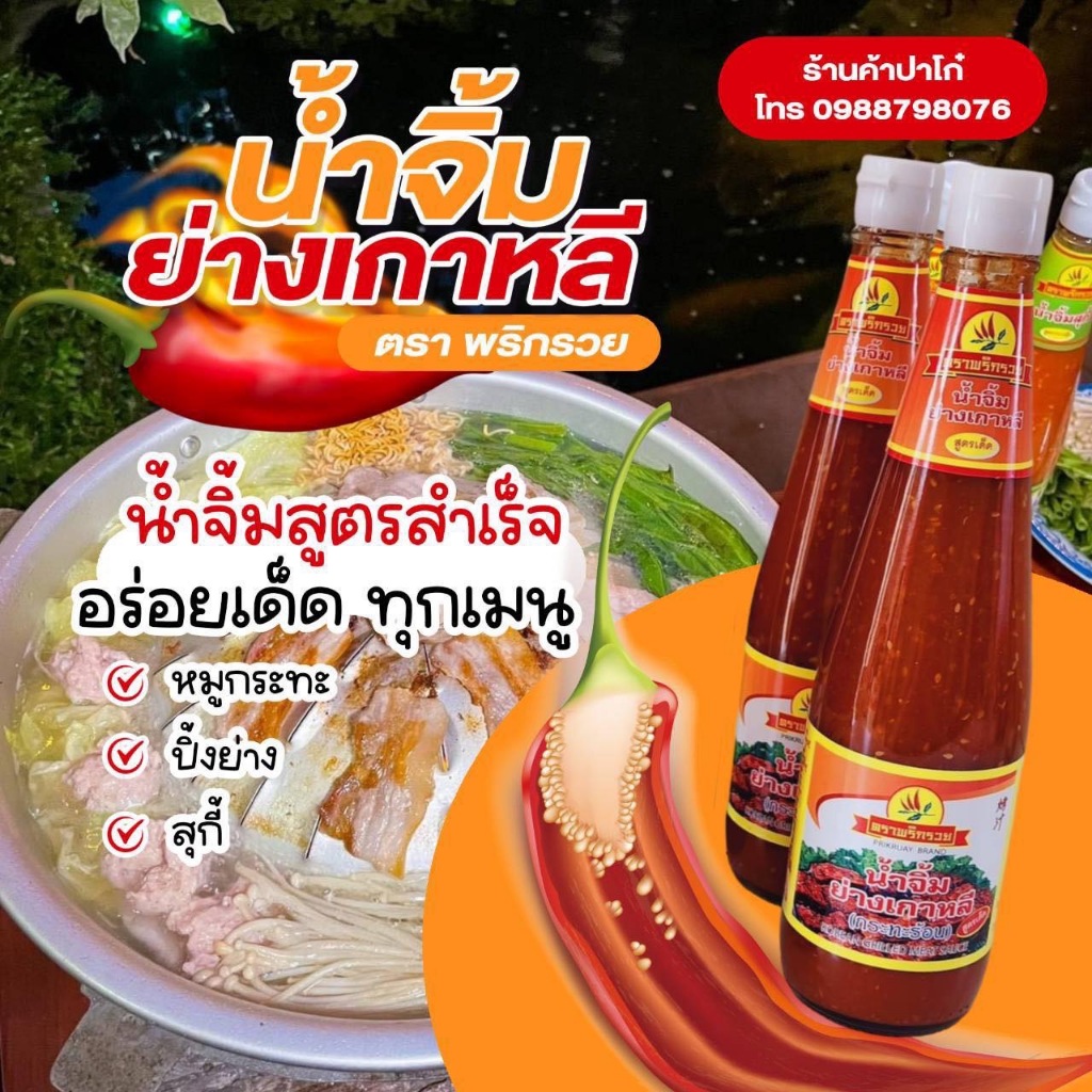 (6 ขวด) น้ำจิ้ม ย่างเกาหลี (สูตรกะทะร้อน) พริกรวย ขวดใหญ่ 670 กรัม รสเด็ด