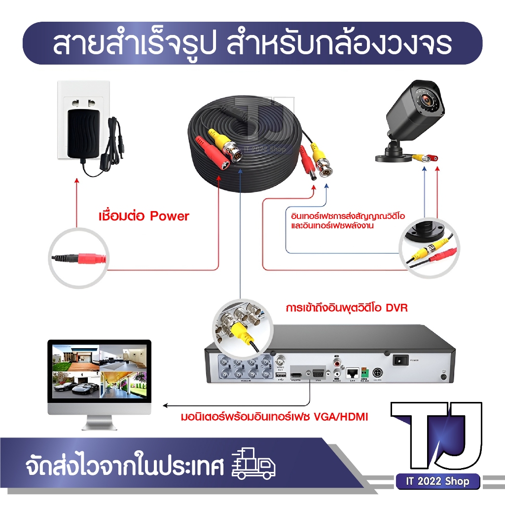 สายกล้องวงจรปิด สายสำเร็จรูป BNC + power ขนาด 5-50 เมตร RG6 + Power Line CCTV สายสัญญาณกล้องวงจรปิด