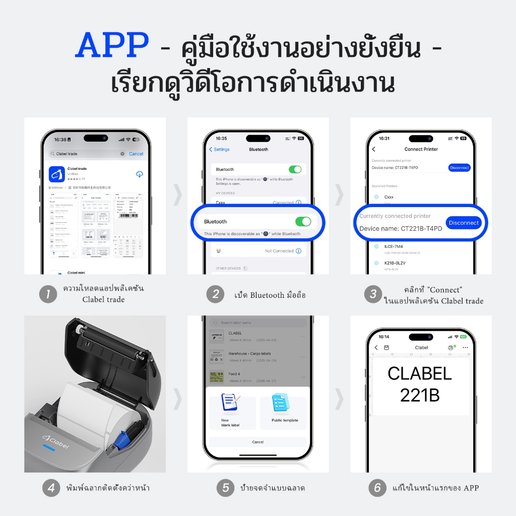 [ในสต็อก]CLABEL 221B เครื่องพิมพ์ฉลากไร้หมึก ประกัน 1 ปี ป้ายราคา บาร์โค้ดและ QR Code กว้าง 20-50 มม