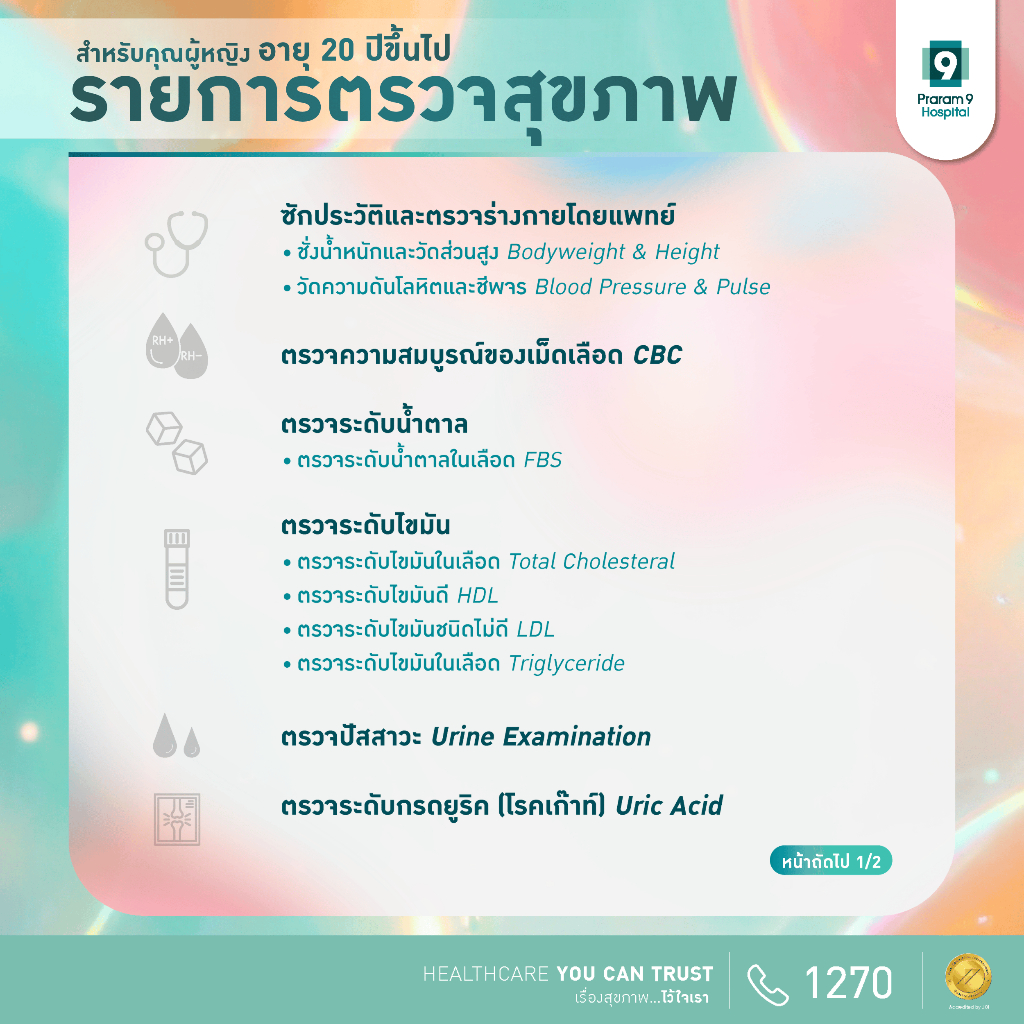 [E-coupon] แพ็กเกจตรวจสุขภาพสำหรับคุณผู้หญิงอายุ 20 ปีขึ้นไป Praram9Hospital