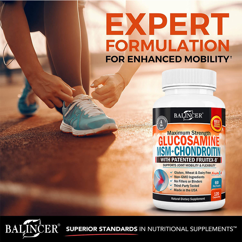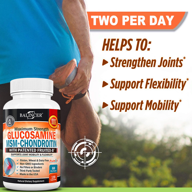 Balincer อาหารเสริมกลูโคซามีน - รองรับการบํารุงรักษาข้อต่อ เพื่อสุขภาพ และความคล่องตัว - 120 แคปซูล