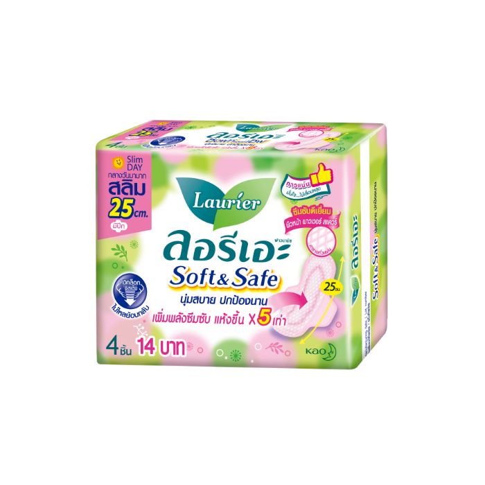 ลอรีเอะ ซอฟท์แอนด์เซฟ สลิม ผ้าอนามัยแบบมีปีก 25 ซม. 4 ชิ้น X 12 แพ็ค