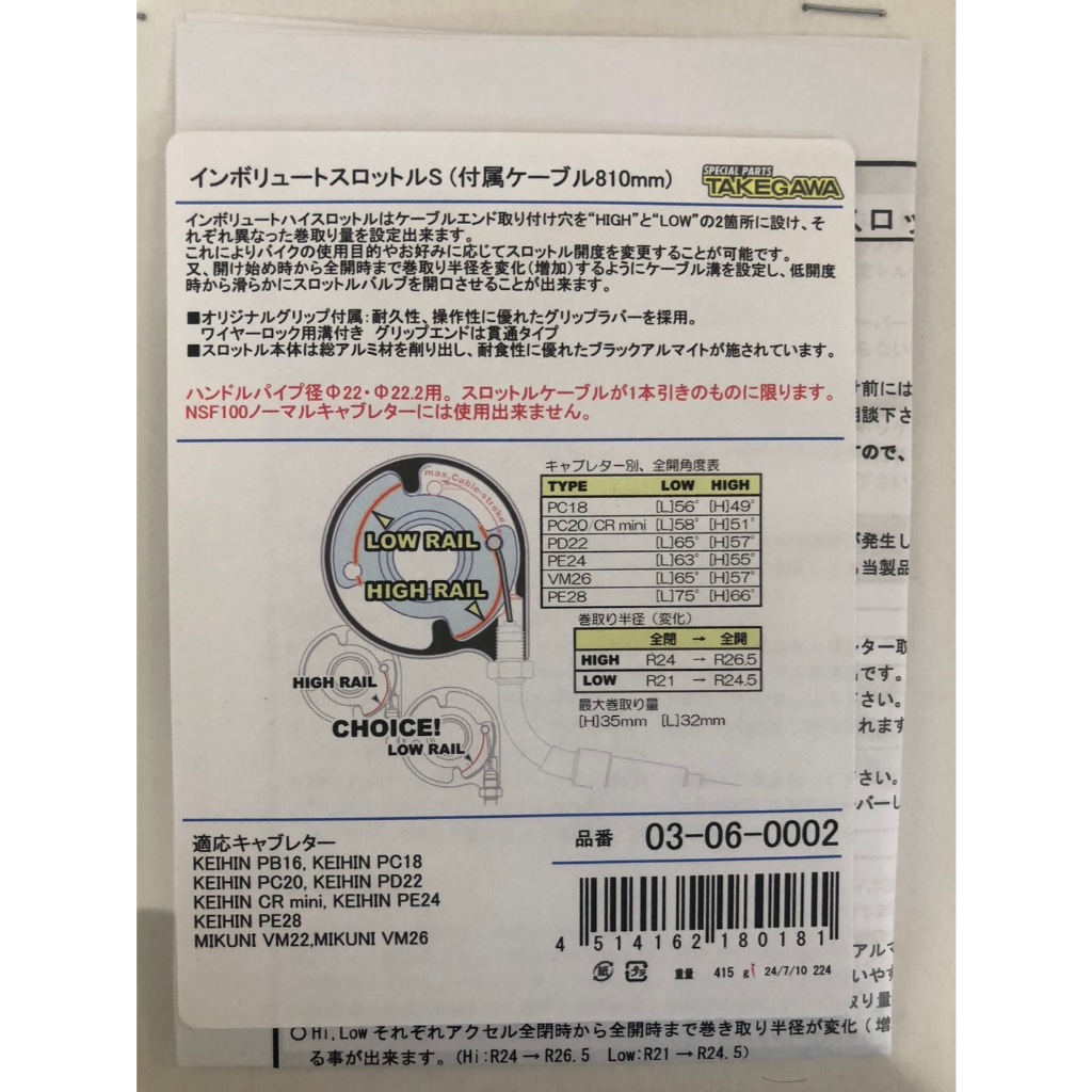 ประกับคันเร่งTakegawa พร้อมปลอกแฮนด์ (810mm) แท้ใหม่ 03-06-0002