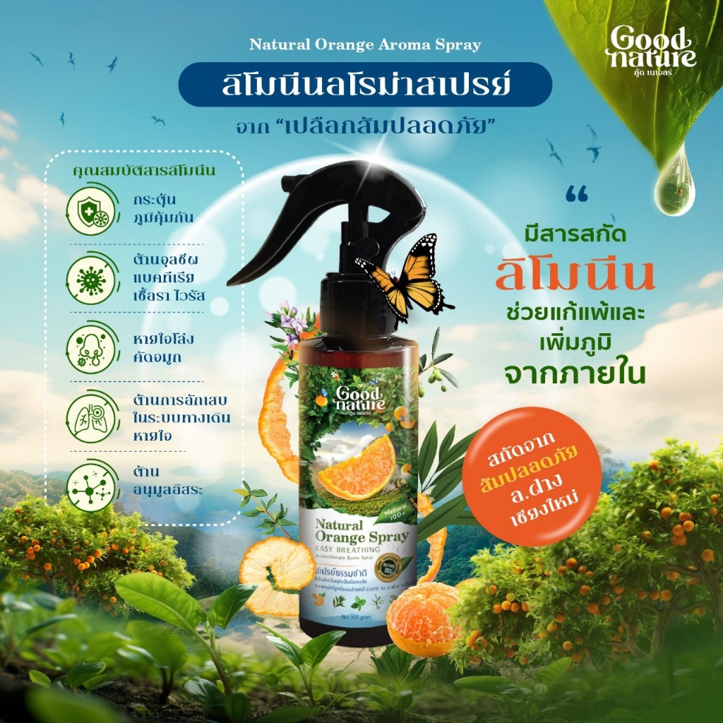 รูมสเปรย์ ลิโมนีนสกัดจากเปลือกส้ม Good Nature 100ก x 2 อโรม่าจากธรรมชาติ 100% ฉีดห้อง กลิ่นหอม จมูกโล่ง แก้แพ้ หลับสบาย