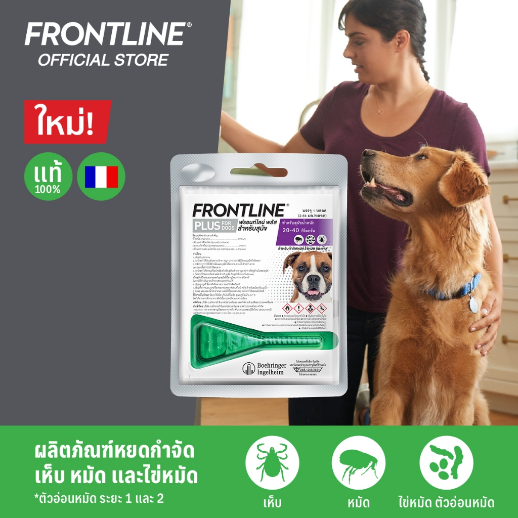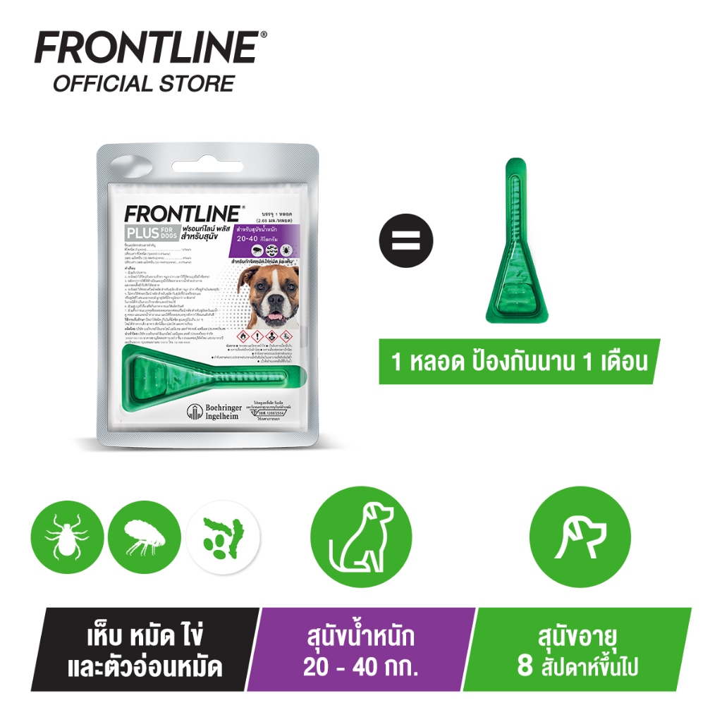 FRONTLINE PLUS DOG Size L (20-40 kg) ฟรอนท์ไลน์ พลัส ยาหยดกำจัดเห็บหมัด สำหรับสุนัข ขนาด L (น้ำหนัก 20-40 กก.)