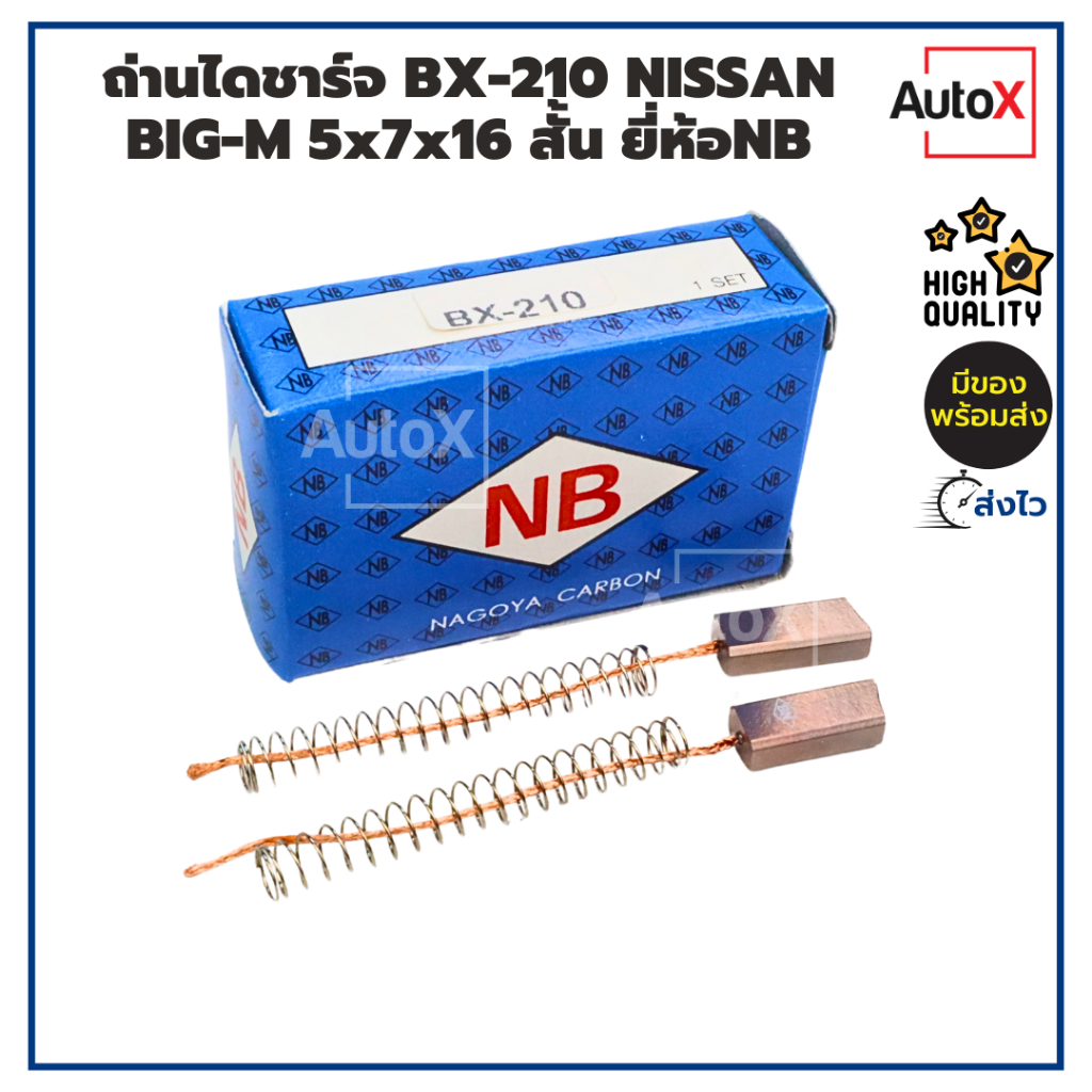 ถ่านไดชาร์จ BX-210 Nissan Big-M ฮิตาชิ ตัวสั้น ขนาด5x7x16mm ยี่ห้อNB (2ก้อน/1ชุด)