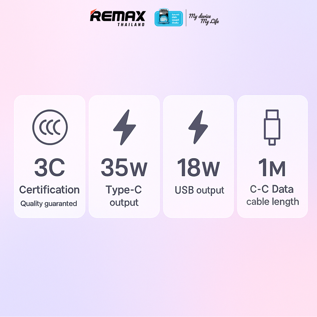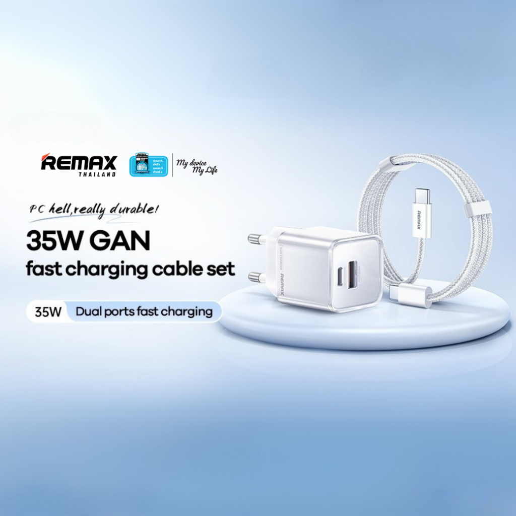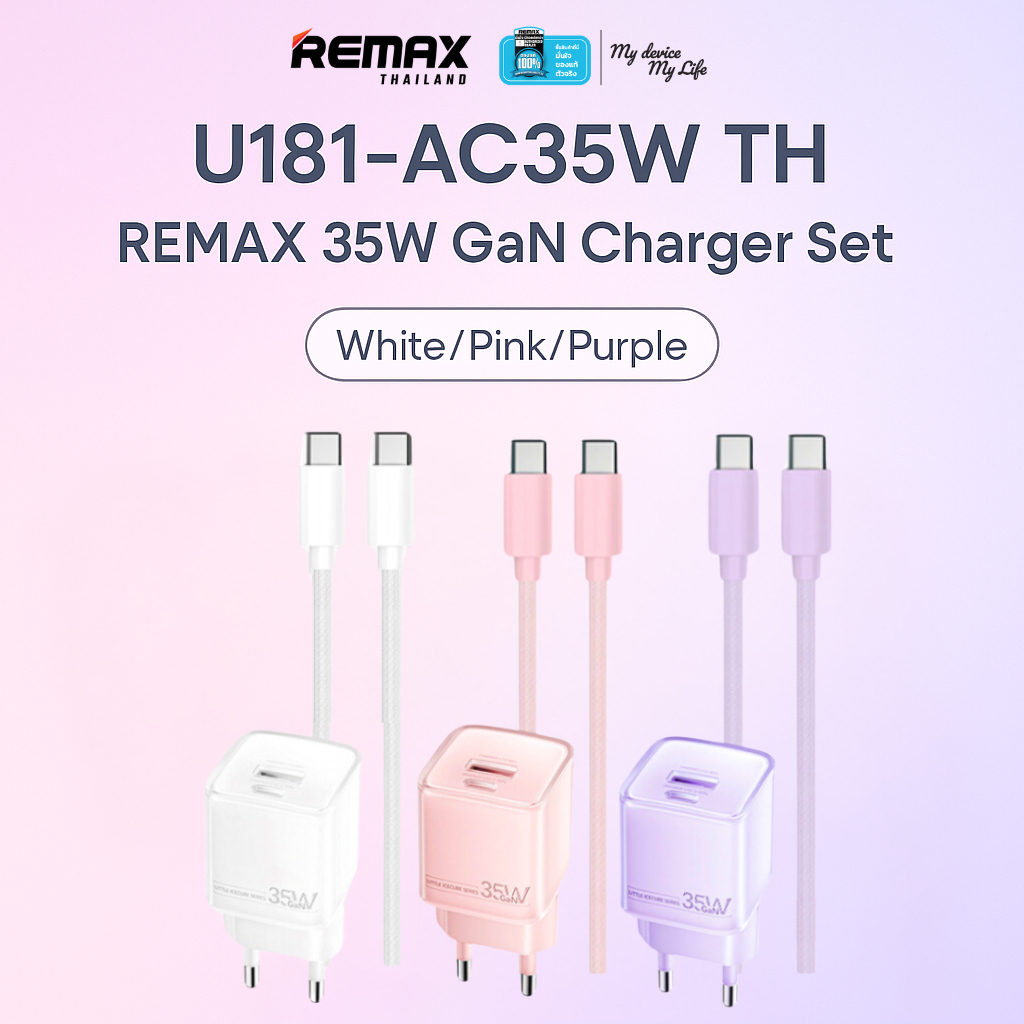 Remax USB Charger U181-AC35W - อะแดปเตอร์ หัวชาร์จ USB / Type-C ชาร์จเร็ว 35W มาพร้อมสายชาร์จ Type-C to Type-C