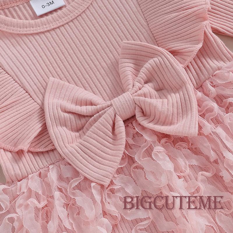[ส่งจากไทย]-0-18 เดือน ชุดรอมเปอร์ แขนยาว ประดับโบว์ ลูกไม้ ชั้น Tulle Hem บอดี้สูท พร้อมที่คาดผม สําหรับเด็กผู้หญิง